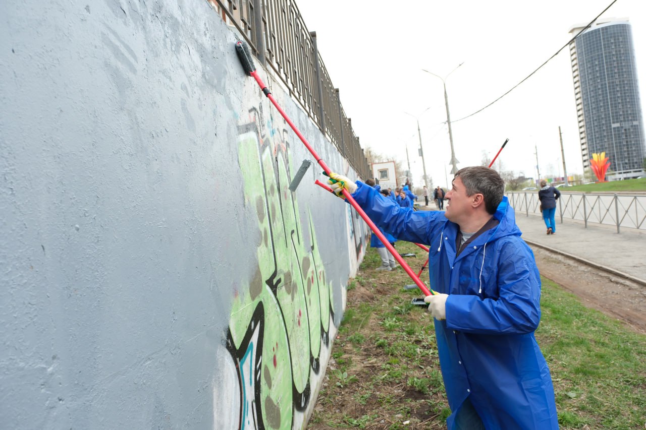 Губернатор Пермского края закрасил граффити во время всероссийского субботника