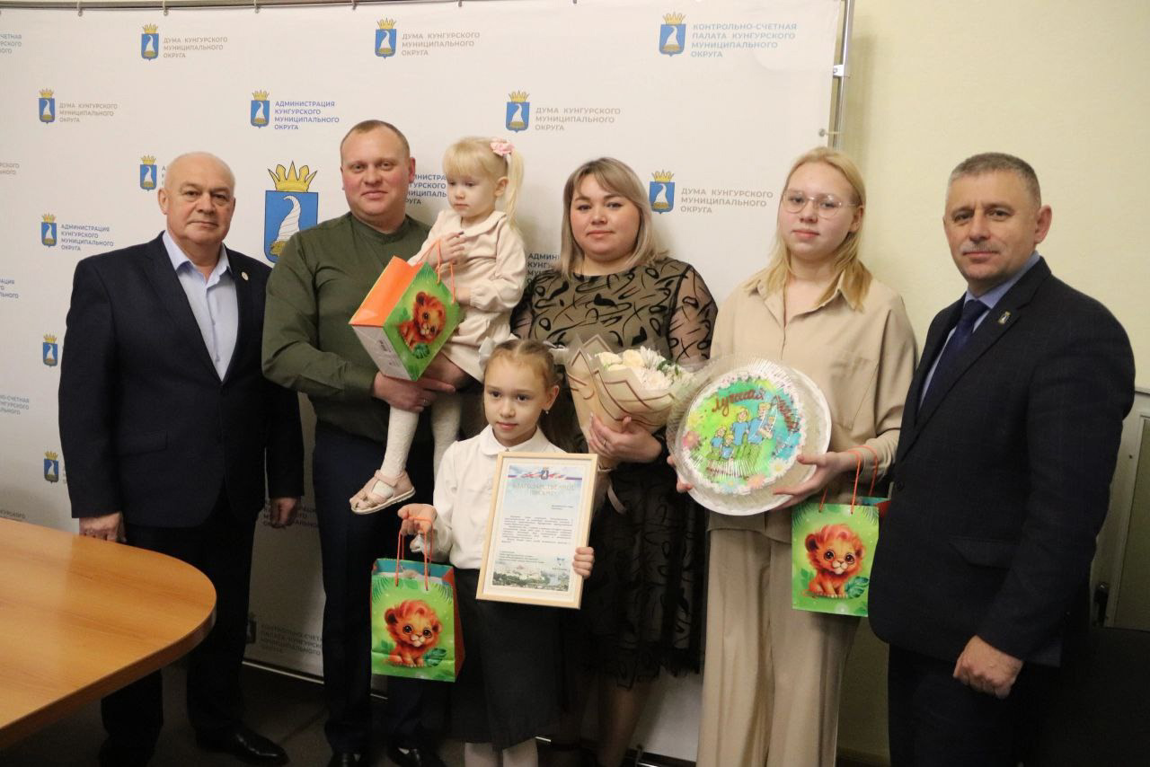 В торжественной обстановке глава Кунгурского округа Вадим Лысанов вручил семьям благодарственные письма и сладкие подарки от кондитерской "САША".